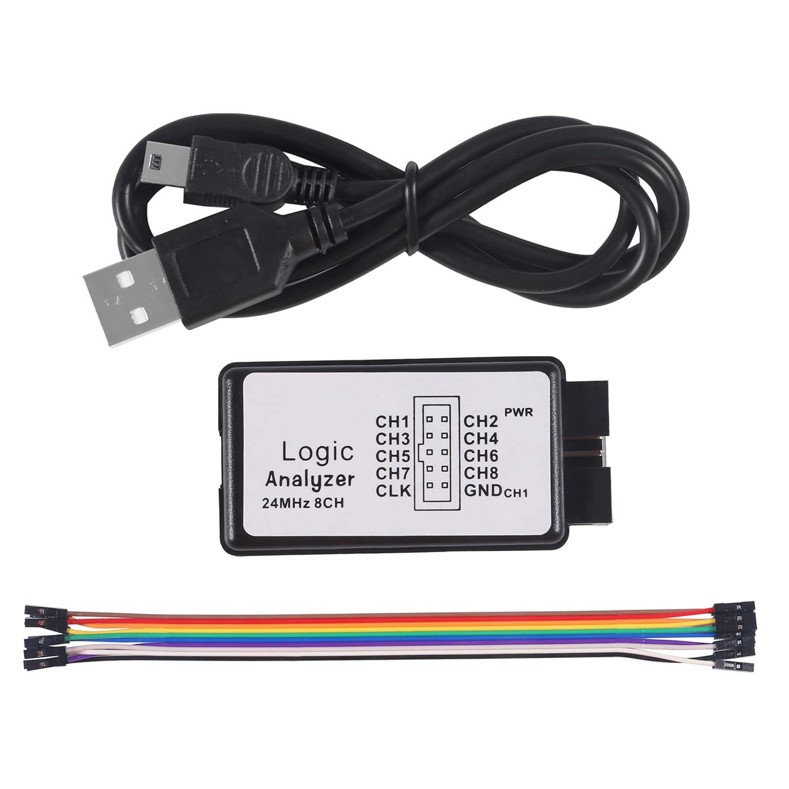USB Logic Analyzer 24MHz 8CH w/USB Cable-Professional Debugging Device for Embedded Systems | UART/IIC/SPI Protocol Analysis | Suitable for Arduino, ARM FPGA Projects