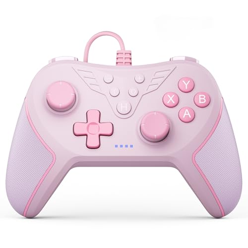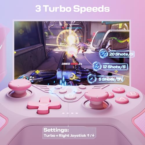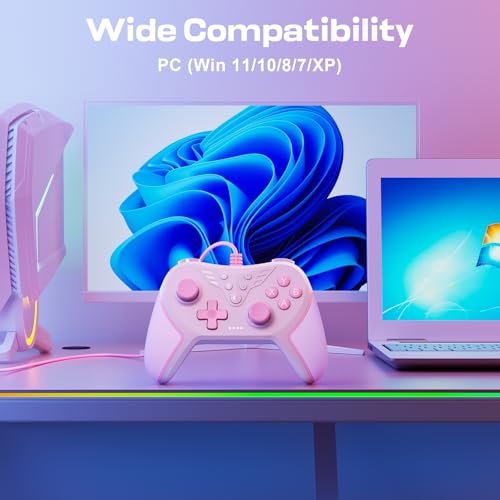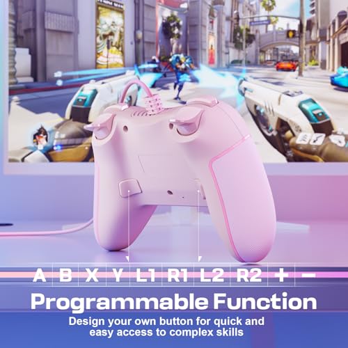 Wired Controller for PC with 2 Mapping Button Adjustable Vibration and 3 Turbo Speeds Compatible for Win(11/10/8/7) Plug-and-Play Pink