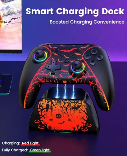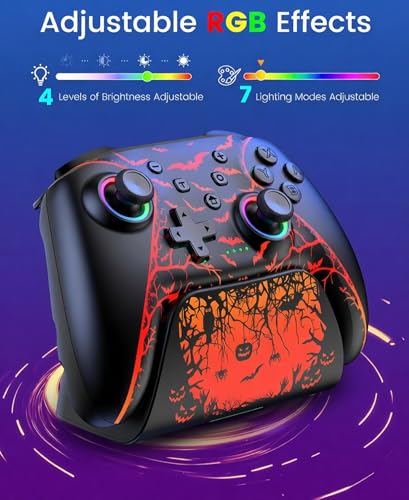 Switch 2 Controller Compatible with Nintendo Switch 2/Switch/OLED/Lite - Hall Effect Joystick & Trigger - 7 Color RGB Wireless Pro Controller with Charging Dock, Macros, Turbo, KeyLinker App - Pumpkin
