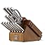 Knife Block Set with Two-stage Sharpener, 14-Piece | Razor Sharp Japanese Stainless Steel Kitchen Knives with Ergonomic Handles