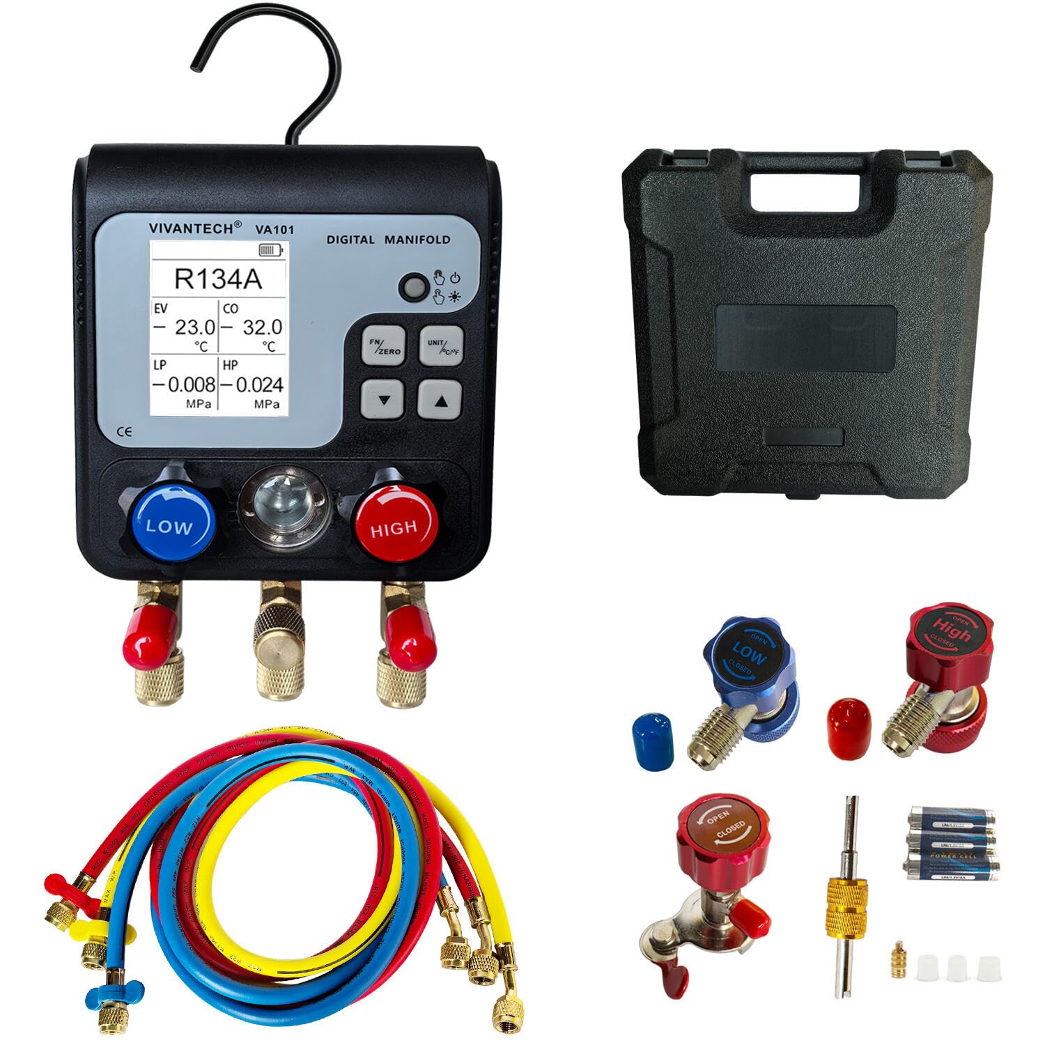 Digital Gauge HVAC, R22, R134A, R410, R502, R1234Y Vacuum Pressure High-Accuracy Manifold Gauge for AC, Refrigeration and Leak Detection with Backlit LCD, 24 Refrigerants Database