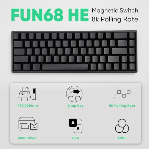 - 16K Scan Rate: FUN68 magnetic switch keyboard features a 16K universal scan rate truly unlocks the potential of 8K polling rate performance