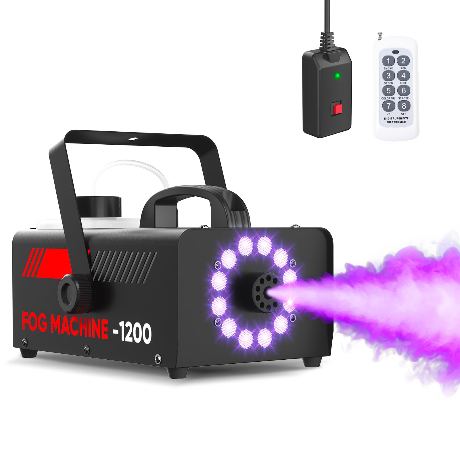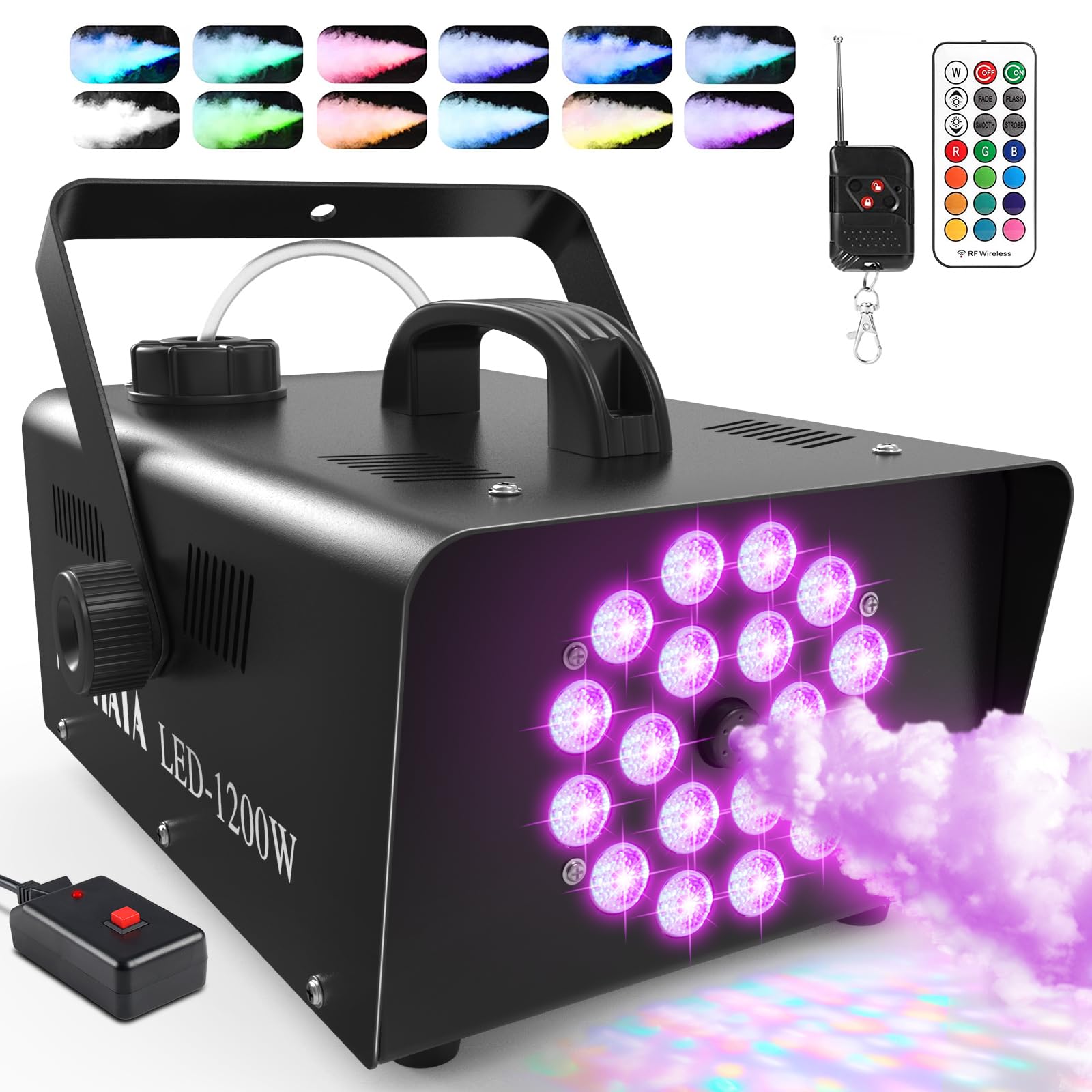 1200W Fog Machine, Smoke Machine Fog with Disco Ball Lights, 6000CFM with 13-Color LED Effects, Wired And Wireless Remote Controls, Ideal for Indoor, Outdoor, Wedding, Parties, and Halloween