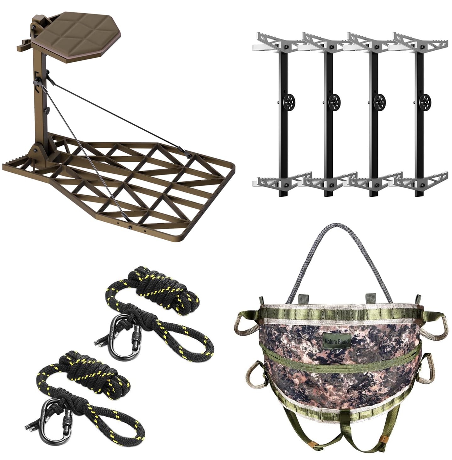 - COMPACT AND LIGHSAFETY FIRST: Always practice with this amsteel climbing aider at ground level to ensure confidence and comfort. Keep the climbing stick aider dry when not in use to maintain its durability and reliability over time. TWEIGHT: Weighing only 1.6 ounces, this climbing aider easily folds into a compact size for effortless storage and portability. It's the perfect step aider for climbing sticks, allowing mobile hunters to move quickly and efficiently.