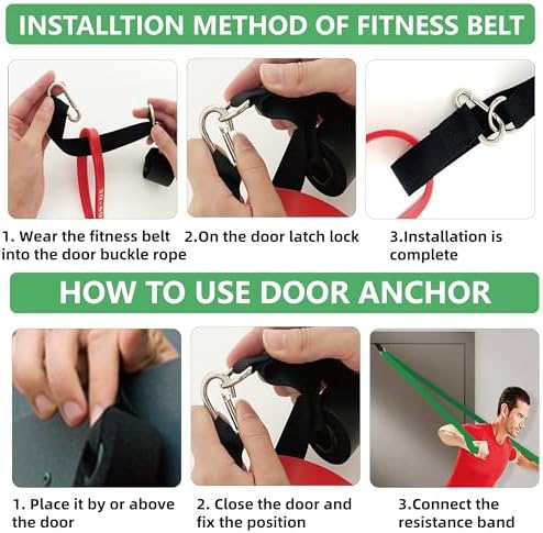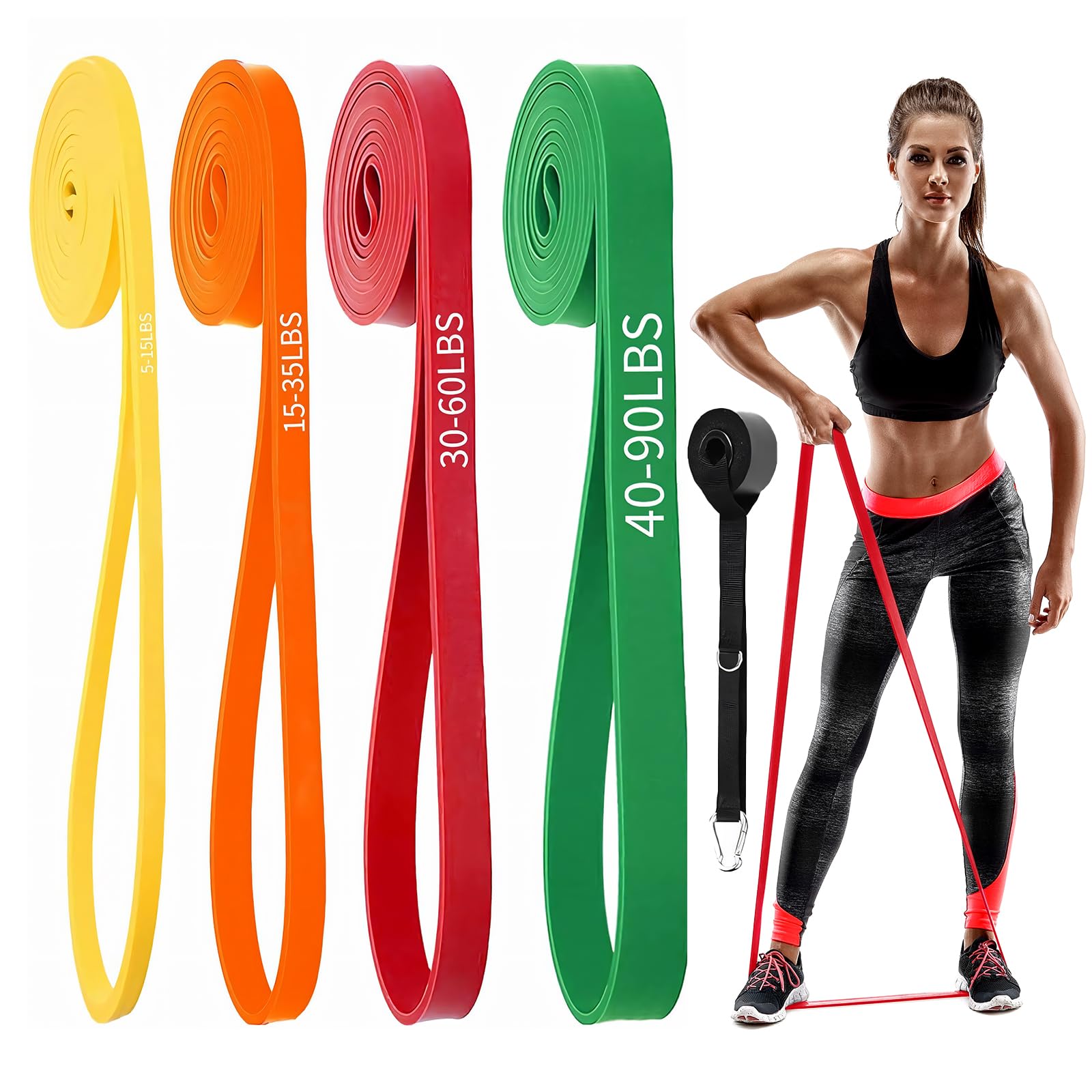 - 【WHAT IS IN THE PACKAGE】1*Door Anchor,1*Drawstring Bag,1*Instruction Manual,1*Exquisite Box Which can be Given to Friends, Family, and Colleagues;4*Elastic Bands with Different Strength Leve,Includes:Yellow Resistance Band (5 - 15 lbs) Orange Resistance Band (15 - 35 lbs) Red Resistance Band (30 - 60 lbs) Green Resistance Band (40-90lbs) Blue Band(50-125lbs)