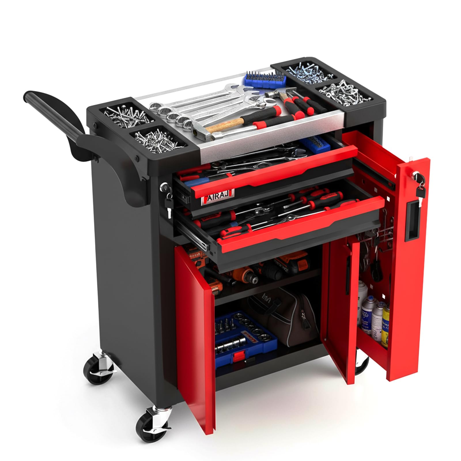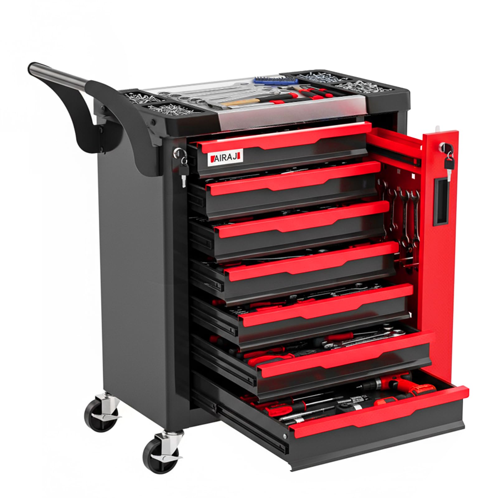 - AIRAJ Tool chest is made of durable cold-rolled steel for high strength, and the surface is powder-coated for wear and rust resistance.It can easily store and transport a variety of supplies and tools.
