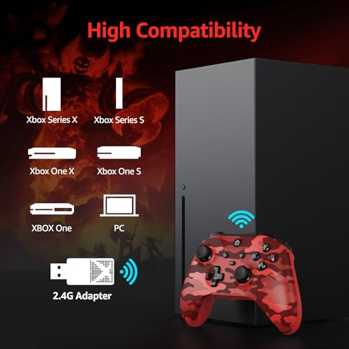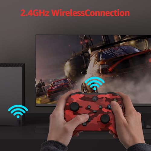GMVOX Wireless Controller for XBOX, Gaming Controller Support Turbo/3.5MM Audio Jack/Dual Vibration, Controller Compatible with XBOX One/ One S/X, XBOX Series S/X, PC, IOS, Android Platforms,with 2.4g Adapter,Camo Red