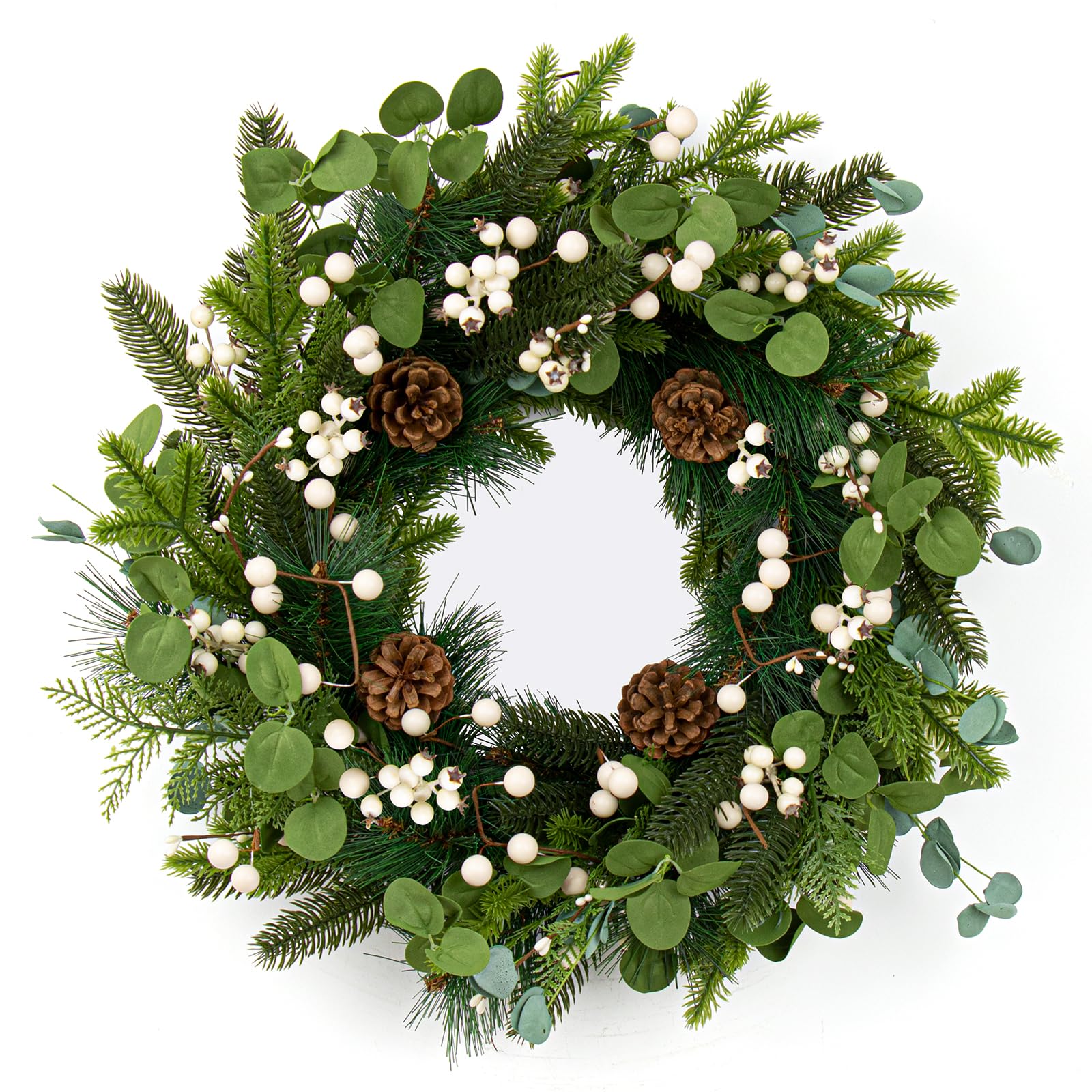 Christmas Wreath for Front Door 20 Inch Indoor Christmas Wreaths Artificial Red Berry Wreath with Norfolk Pine and Holly Leaf for Holiday Celebrations