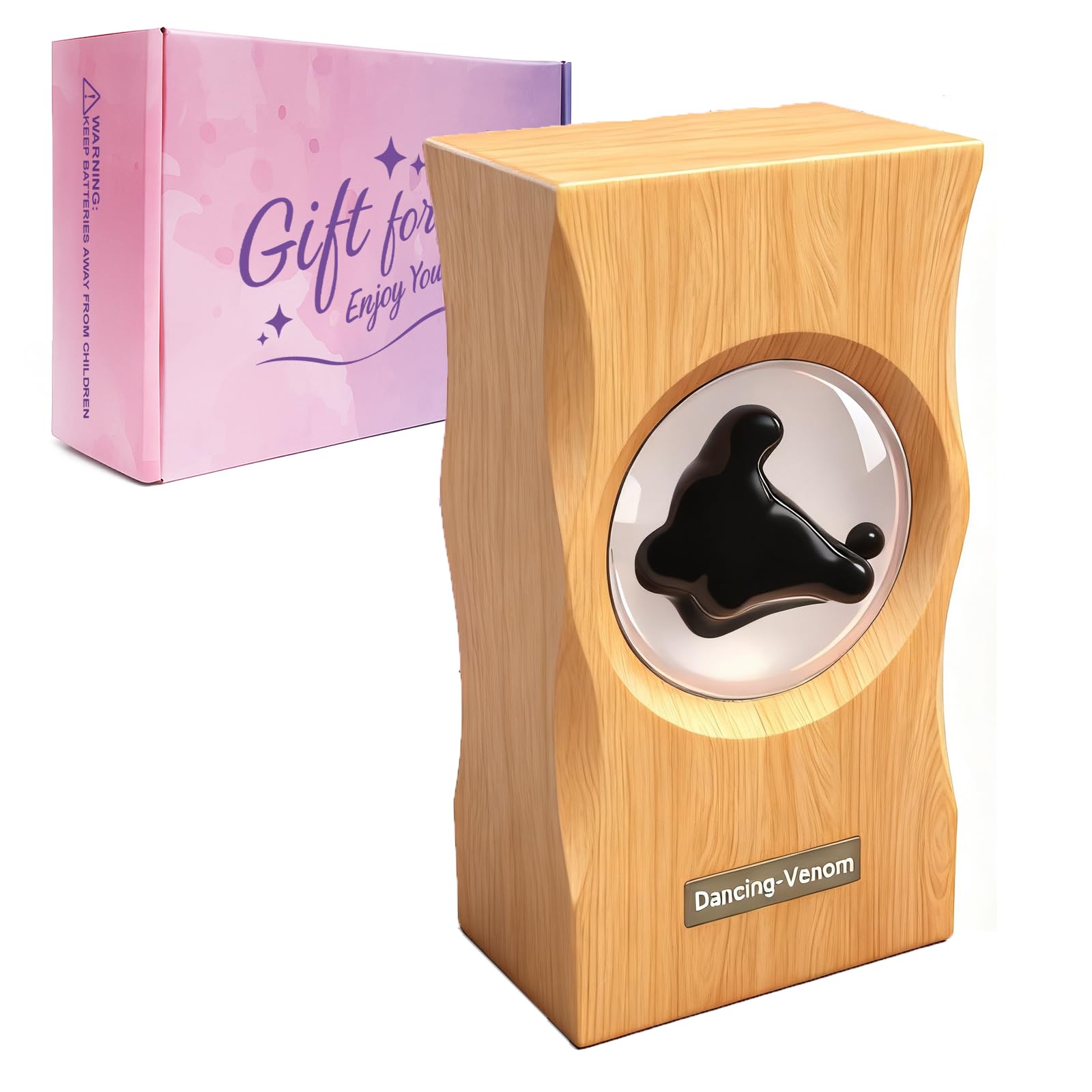 - 𝟏𝟎𝟎% 𝐍atural 𝐒olid 𝐖ood: The ferrofluid music mate is crafted from a single block of hardwood. Its grain invites tactile exploration while releasing subtle woody notes. Encased in crystal-clear glass, purified water and nano-iron particles create an eco-safe visual experience.