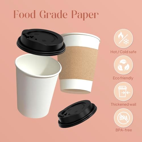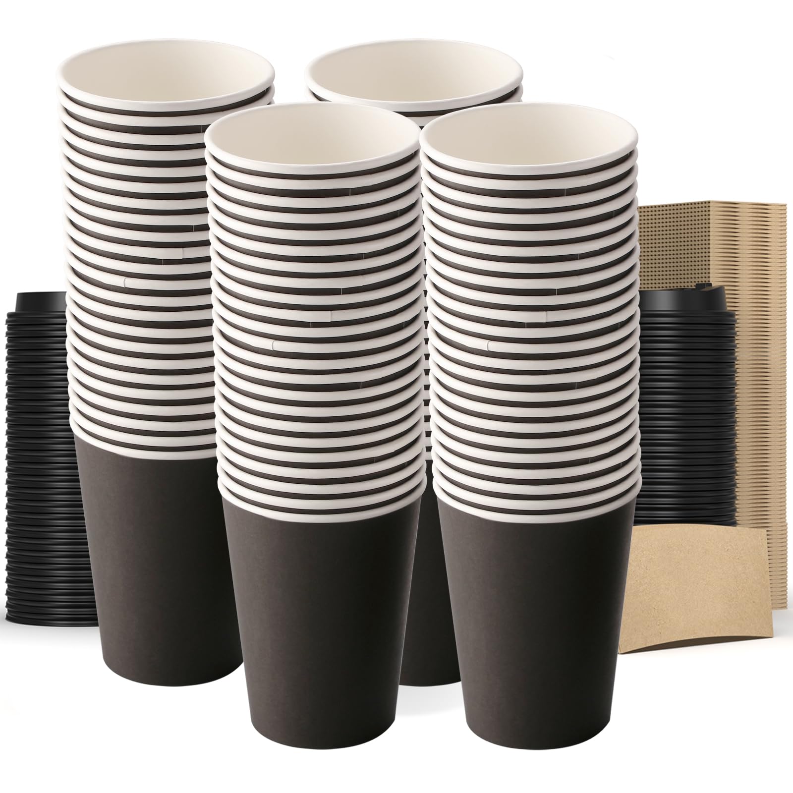 - Complete Set for Ultimate Convenience:This set includes 50 durable 12oz white paper cups, 50 matching lids, 50 cup sleeves, and 50 straws. It’s an all-in-one solution for any event or daily use, saving you time and effort when serving drinks to guests, coworkers, or family.