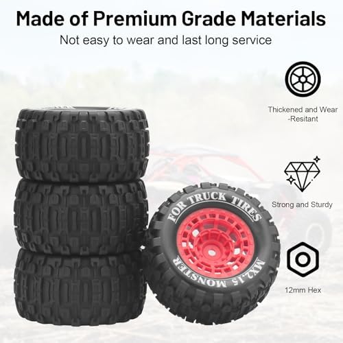 1/16 RC Car Tires and Wheels, daitoku 12mm Hex RC Truck Tires for MiniX Mini XRT 1/16 MJX 16207 16210 16209 16208 HSP 94186 Traxxas E-Revo LOSI 1/18 Mini LMT - Style B (Red)