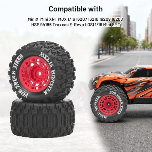 - Universal Compatibility - The 12mm hex RC wheels and tires designed for MiniX Mini XRT 1/16 MJX 16207 16210 16209 16208 HSP 94186 Traxxas E-Revo LOSI 1/18 Mini LMT rc car