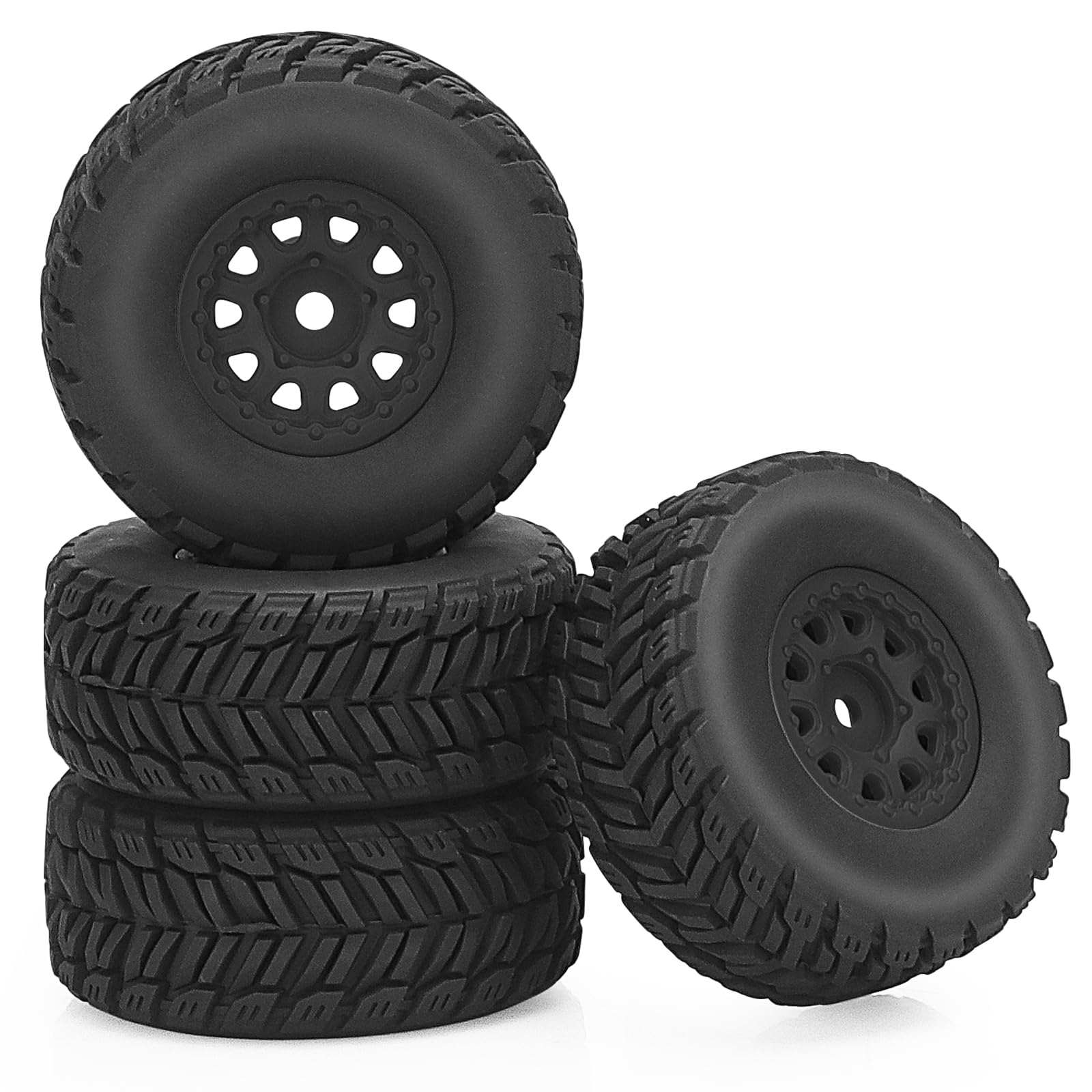 - Superior Performance and Unique Surface Design - RC car wheels adopt to unique surface texture design enhances grip and has anti-skid feature, which can enable superior road holding for stable and flexible driving. It is suitable for a variety of terrains such as pavement, dry grass, hard-packed dirt, and loose surfaces