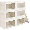 Stackable Storage Bins with Lids - Medium Storage Box with Lids, Foldable Closet Boxes for Organizing, Wardrobe Clothes Organizer with Window, Fabric Bins for Living Room, 6 Pack, Beige