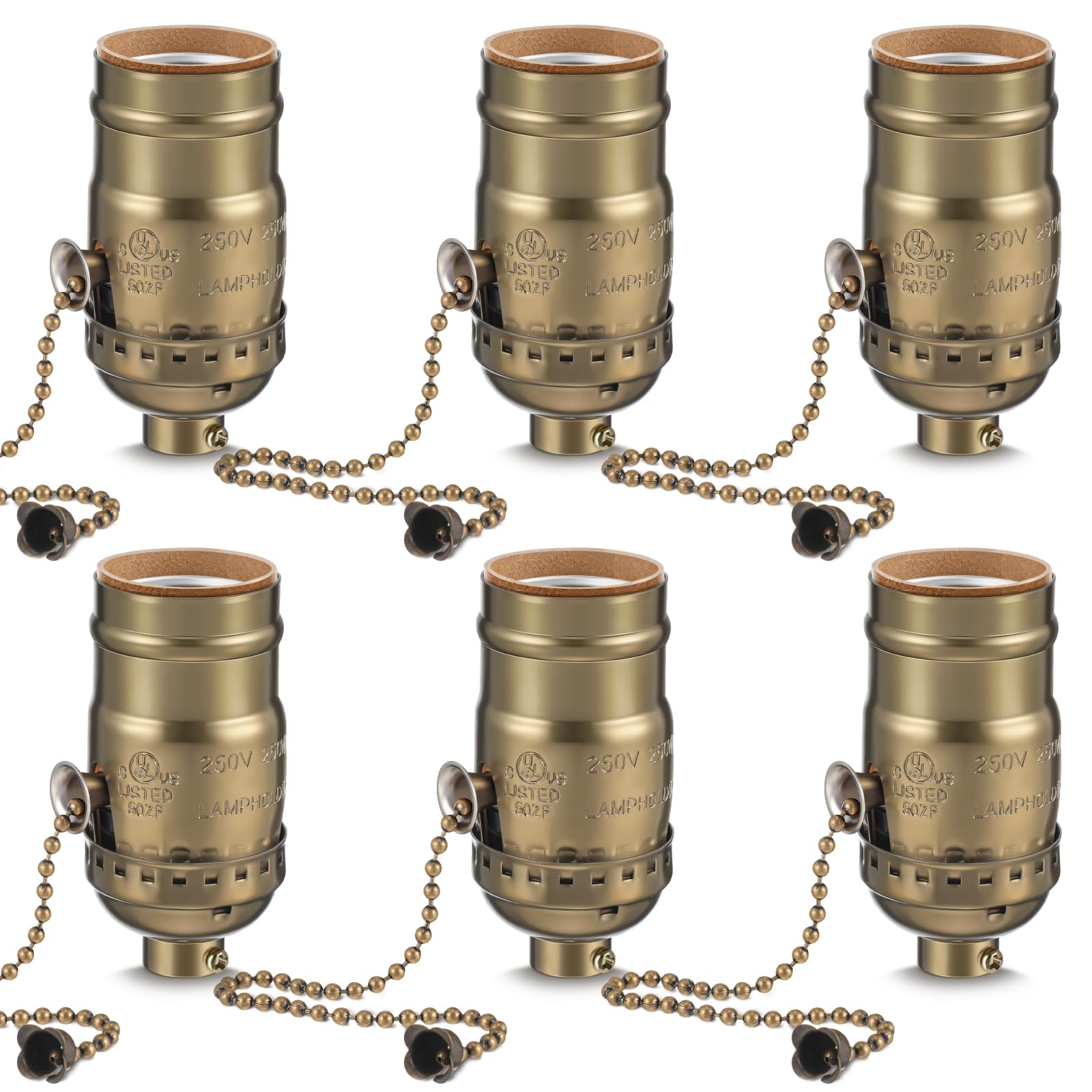 - PREMIUM DESIGN: Antique brass finish socket with convenient turn knob switch for easy on/off operation