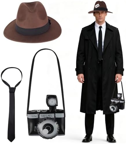 Yewong 4 Pieces Vintage Paparazzi Costume Accessories Set Hat Camera Necktie and Press Card for Old Retro Press Journalist Photographer Cosplay