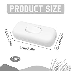 【Product Material】This in line switch for lamps are made of high-quality plastic material, ensuring long-term stable operation of the switch and safe and reliable use. 【Reasonable Design】There is a button on the switches surface, just press the torpedo switch to control the light. Made from lightweight and durable plastic, ensuring switch safety. Small and elegant, perfect for replacing old desk lamp switches, bringing convenience and comfort to your life. 【Plug in Switch】light switches are in bipolar plug-in light switch. Connected using screw terminals with internal copper two-wire contacts, no soldering is required, making it work reliably regardless of frequency of use. A great replacement for your old switch in the bedroom. 【Package List】2 Pack * White light switches Torpedo Switches. Push-in switch 250v material:PC plastic shell, voltage: 250V, current: 6Amp, push-in switch for small household appliances or light bulb switch accepts core round wire or flat wire, which can meet your daily use needs. 【Wide Applicaion】Our inline light switch for lamps switch are ideal light switches and have diverse uses. The 2-pin plug-in light switch is suitable for various lamps, such as table lamps, bedside lamps, wardrobe lamps, wall lamps, mirror lamps, floor lamps and any other lighting products.
