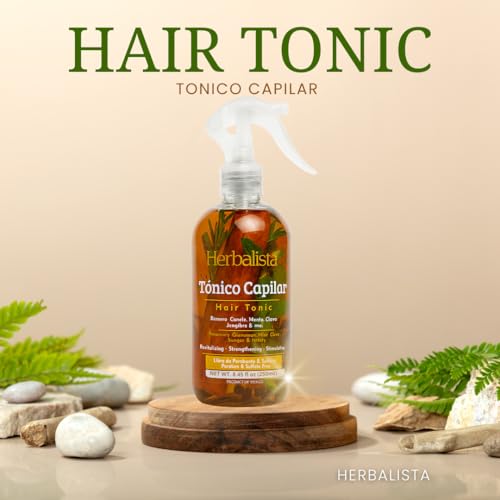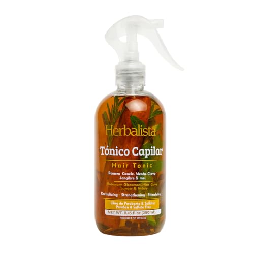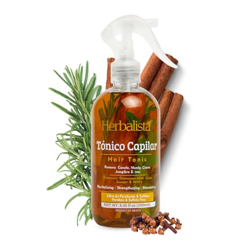 Tonico Capilar - Botanical Hair Tonic 250ml (8.45 fl oz) Spray Bottle – With Real Rosemary, Ginger, Clove, Cinnamon & Mint – 100% Natural & Artisanal