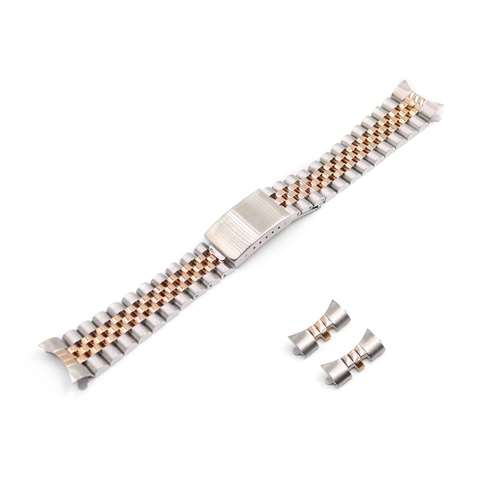 HFERHT 18mm 20mm 22mm Watch Accessories Stainless Steel 2 Tone Gold Slive Stretch Metal Replacement Expansion Band