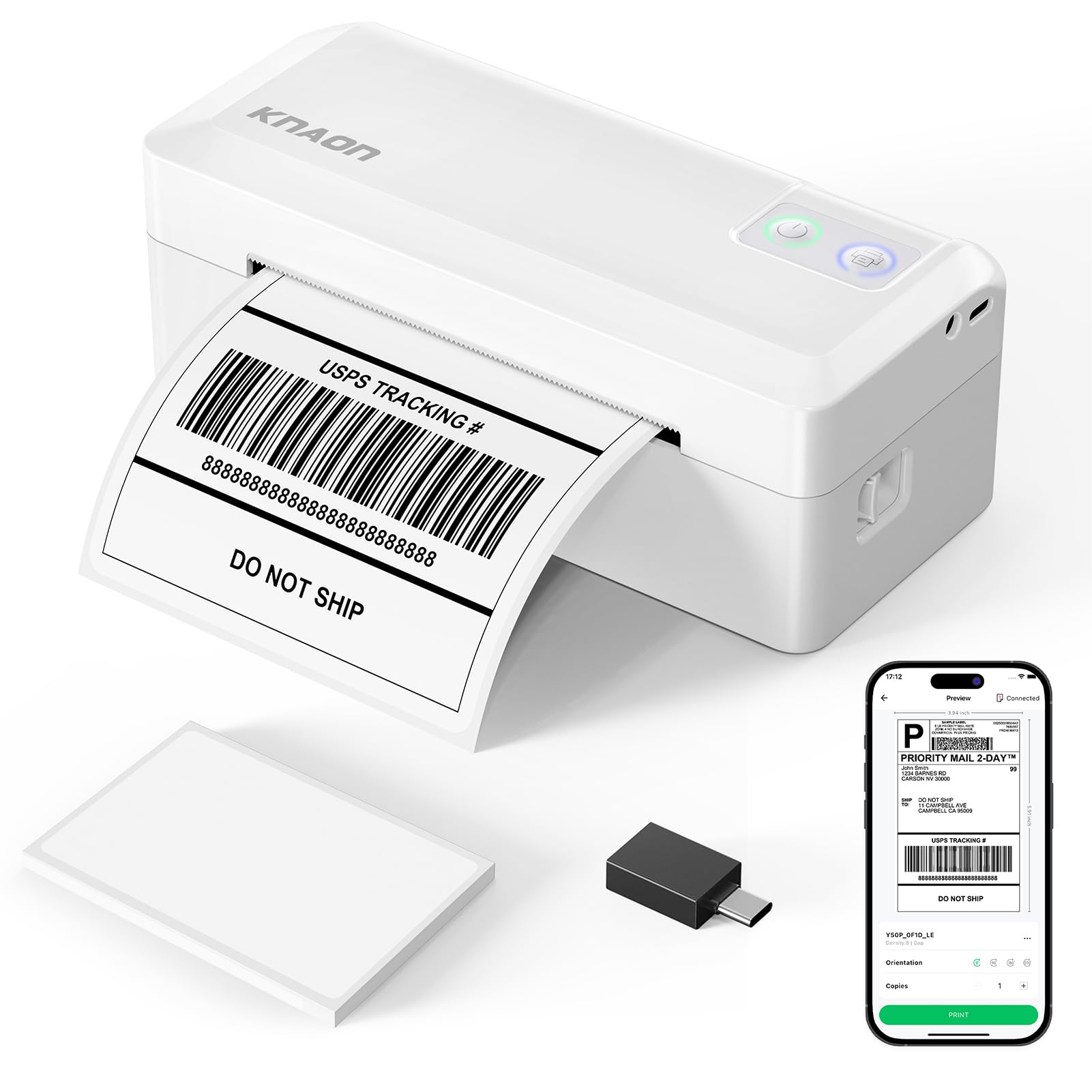 - Compact and Easy to Use–Designed for space-saving convenience, this thermal label printer fits neatly on any desk. Lightweight and quick to install, it connects via USB or Bluetooth for instant printing. Suitable for home offices, retail stores, and warehouse operations, it functions as a dependable thermal shipping label printer for daily labeling tasks