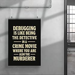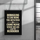 - Searching for unique gifts for software developers? Your hunt ends here with this quirky and humorous debugging poster! Perfectly capturing the daily challenges faced by programmers, this poster features the hilarious quote: "Debugging is like being the detective in a crime movie where you are also the murderer." It's a delightful nod to the complex, often paradoxical world of coding, resonating with anyone in the tech industry. Ideal for sprucing up offices, home workspaces, or dorm rooms, this poster adds a light-hearted touch to environments where creative problem-solving takes place. Tech enthusiasts, budding programmers, or seasoned developers will all find joy in its witty wisdom. Beyond just decoration, this piece serves as a constant reminder of the persistence and creativity involved in programming. Whether for a special occasion or a surprise just because, this poster stands out as a thoughtful and amusing gift. Encourage smiles and spark conversations with a piece that reflects the true spirit of debugging brilliance. Designed with a blend of humor and insight, it's a fun and fitting tribute to the world of software development.