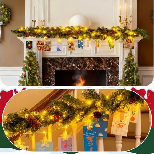 - Packaging Contents: you will receive 1 pre-lit Christmas artificial garland photo clip, a Christmas garland star shaped clip light string, 20 clips, filled with pine cones and berry clusters, this unique and novel Christmas artificial garland adds a touch of festive cheer to your holiday decor