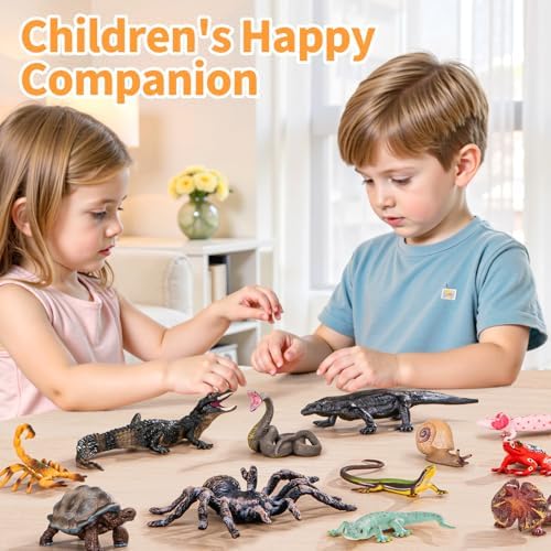 - Realistic Reptile & Amphibian Figures: This 14-piece set includes detailed figures of Axolotl, Leopard Gecko, Komodo Dragon, Snake, Tree Frog, Spider, Scorpion, Alligator, Frilled Lizard, Sand Lizard, Gecko, Snail, Chameleon, and Tortoise, offering a great way to explore different species and habitats.