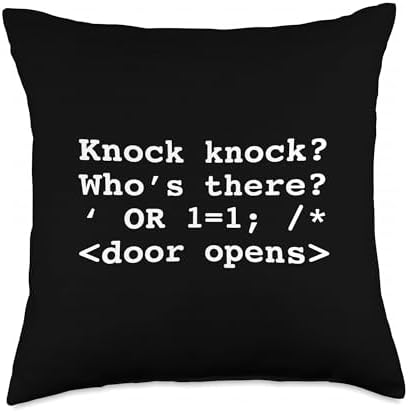 Funny Programmer Hacker Programming Injection Knock Knock Throw Pillow