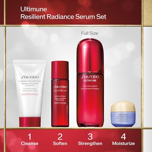 Shiseido Resilient Radiance Serum Set - Clarifying Cleansing Foam (50mL), Eudermine Essence (30mL), Ultimune Power Infusing Serum (75mL) & Vital Perfection Advanced Cream (15mL) - $223 Value