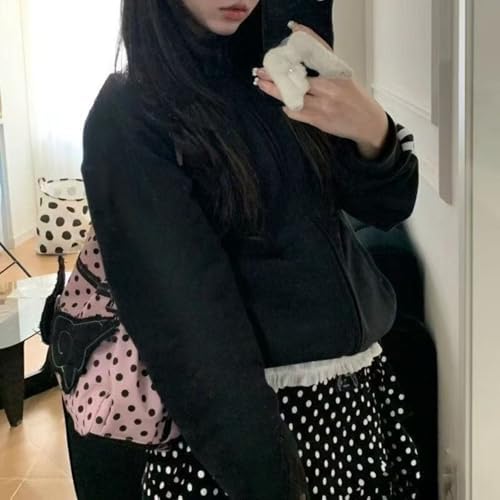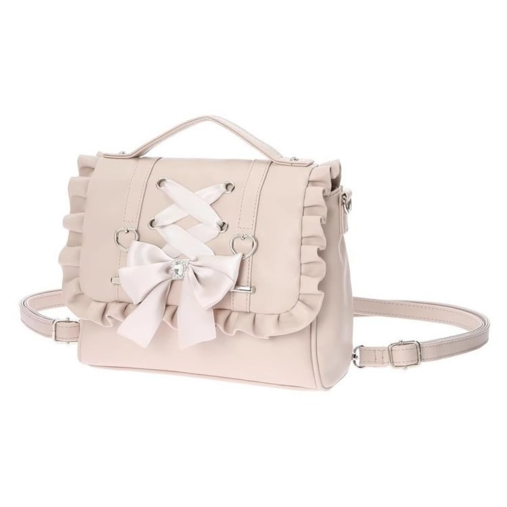 Pokn Polka Print Backpack Kawaii Shoulder Bag Cutecore Lace Canvas Backpack Vintage Shoujo Casual Bags (Pink)