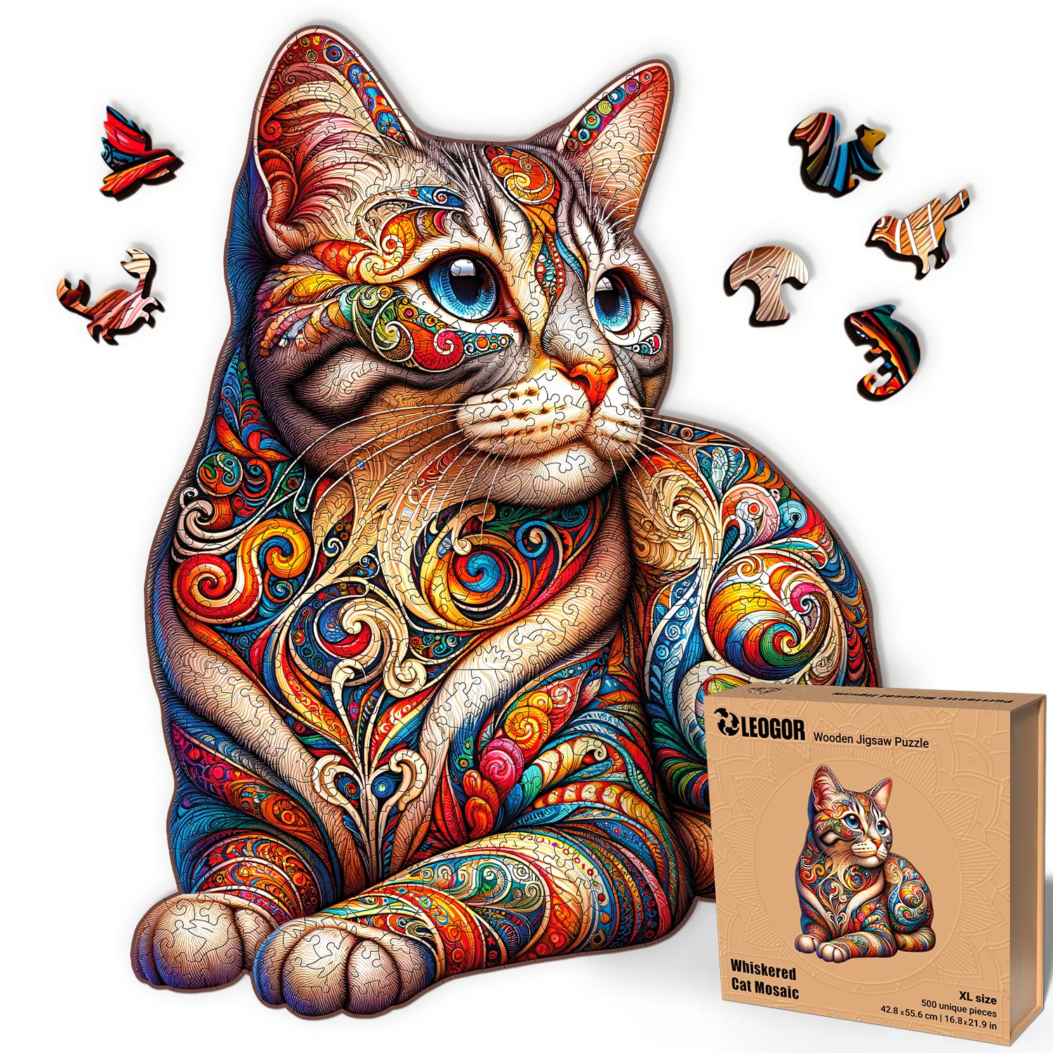 Wooden Puzzle 500 Pieces for Adults of Adult Cat Animal Modern Art Black As A Fun Home Decoration