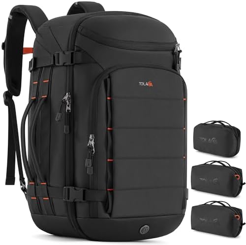 Tolaccea Travel Backpack Carry On 40L, Laptop Backpack with 3 Packing Cubes, Flight Approved Duffel Luggage Bag for Men Women, Water-resistant Large Business Rucksack Daypack, Fits 15.6" Laptop, Black