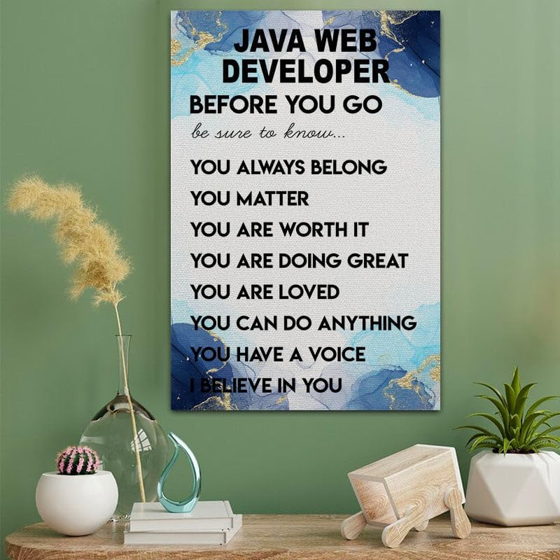 Inspiring Java Web Developer Canvas, Abstract Blue Watercolor Style Java Web Developer– Believe in Yourself Quote, Custom Wall Print, Ready to Hang