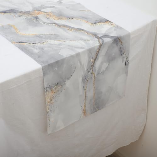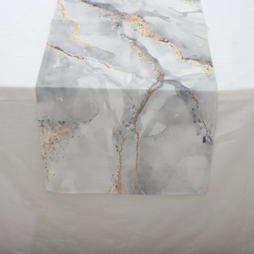 Generic 1Pcs Table Runner Marble Pattern Table Runner Flax White Gray Gold Tone 33x90cm