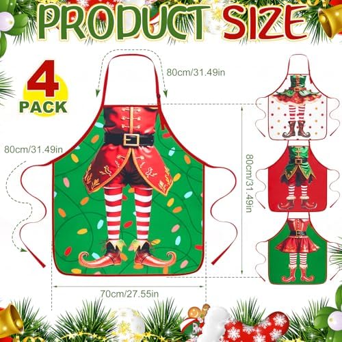 4 Pcs Christmas Aprons for Adults, Funny Christmas Elf Apron, Christmas Kitchen Baking Apron Costume Accessories, Xmas Gag Gifts for Cooking, Baking, BBQ, Cosplay