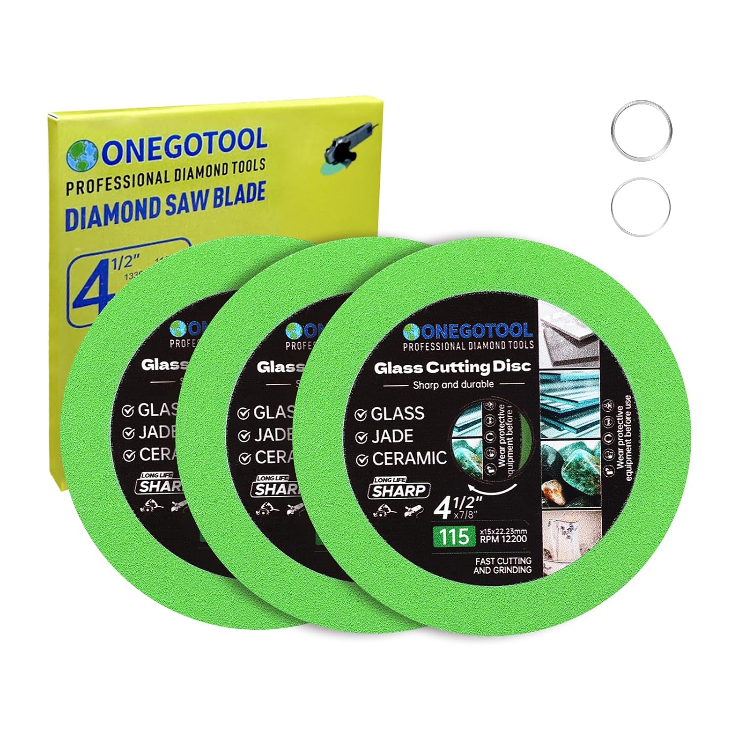 4-1/2x7/8 inch Glass Cutting Disc for Angle Grinder Glass Ceramic Diamond Cutting Blade Disc for Grinding Jade, Crystal, Wine Bottles, Tile. (3PCS)