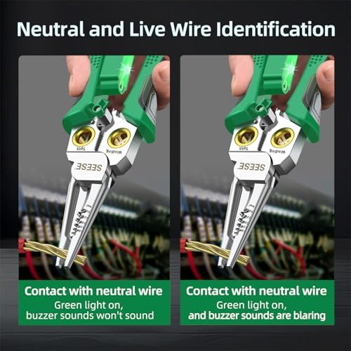 8 in 1 Wire Stripper Twisting Pliers - Multi-Function Pliers, Suitable for 12V to 250V Live, Neutral, Hot Wire, Sound and Flashing LED Alarm, Easy to Use, Professional, Home Improvement