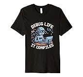 - Show your coder humor with this “Debug Life – It Compiles” design. Featuring a coding robot with debug elements, it’s perfect for programmers, developers, and IT lovers. A design for hackathons and coding sessions.