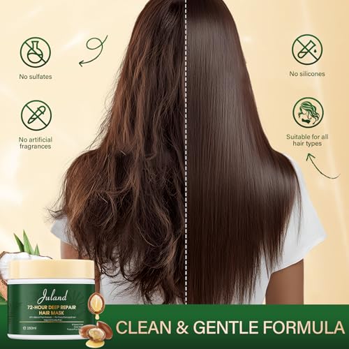 Juland Hair Mask, Collagen Hair Mask with Natural Amla Oil for Moisturization & Damage Repair, Hydroplex Technology for Stronger, Shinier Hair, 11 oz Revitalizing Treatment for Dry