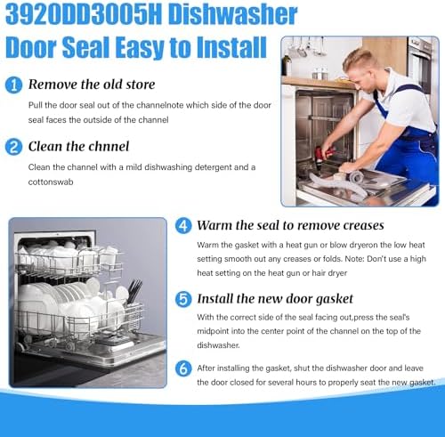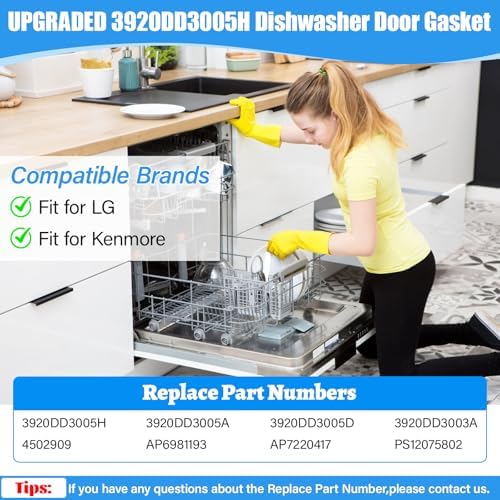- 【LG Dishwasher Door Gasket 3920DD3005H Fix Symptoms & Easy to Install】lg dishwasher tub gasket 3920dd3005h lg dishwasher replacement parts for LG fix the folowing problems: 1.Old door gasket aging damage; 2.Dishwasher door can't be closed; 3.Dishwasher can't be started; 4.Dishwasher leaks; 5.Dishwasher making noise. The 3920dd3005d 3920dd3005a kenmore dishwasher door seal is easy to install.If you in doubt on installation,please search for "3920DD3005H" on YouTube and watch the installation video. Wear gloves and disconnect the power before installation.Saves time and effort, save you a large amount of maintenance costs.
