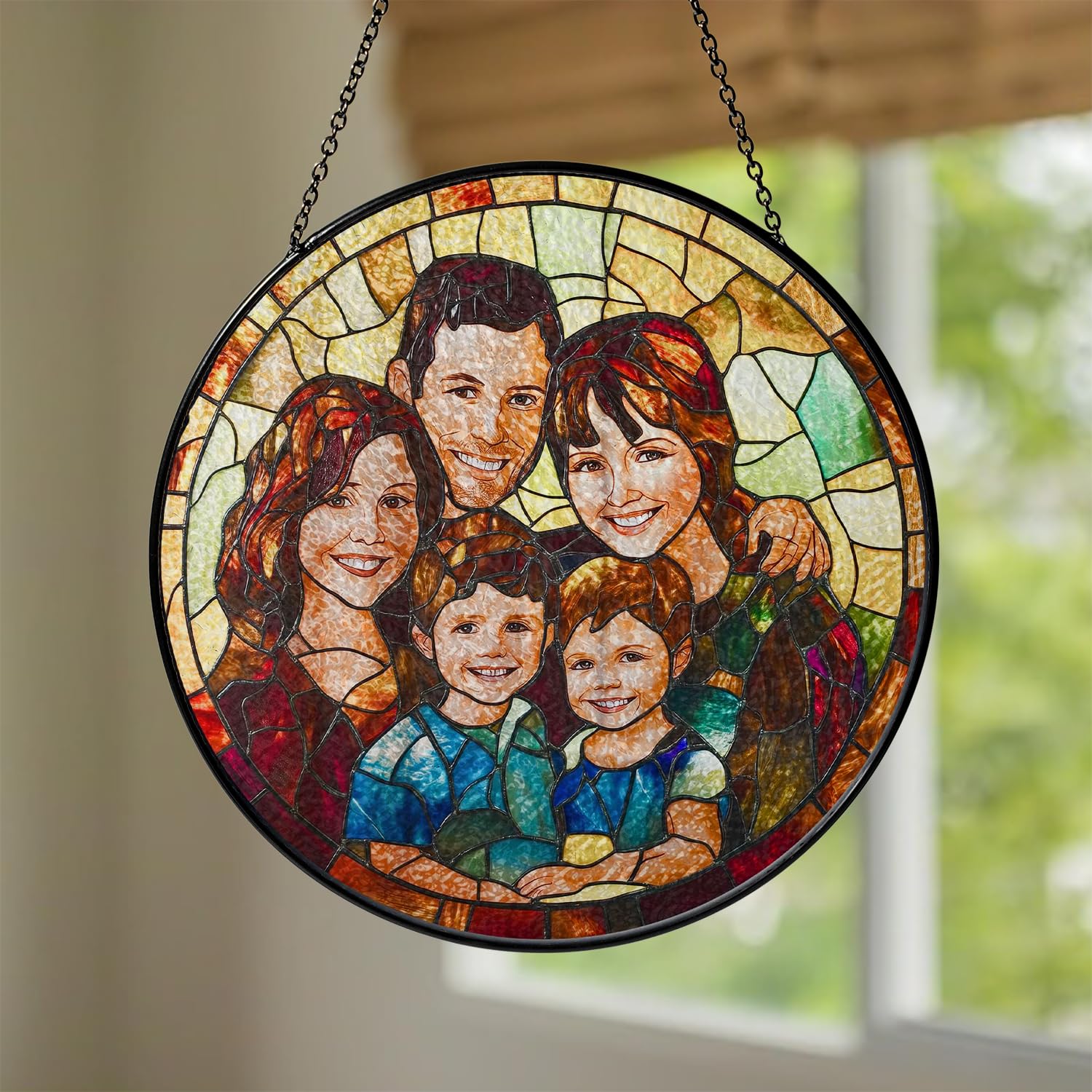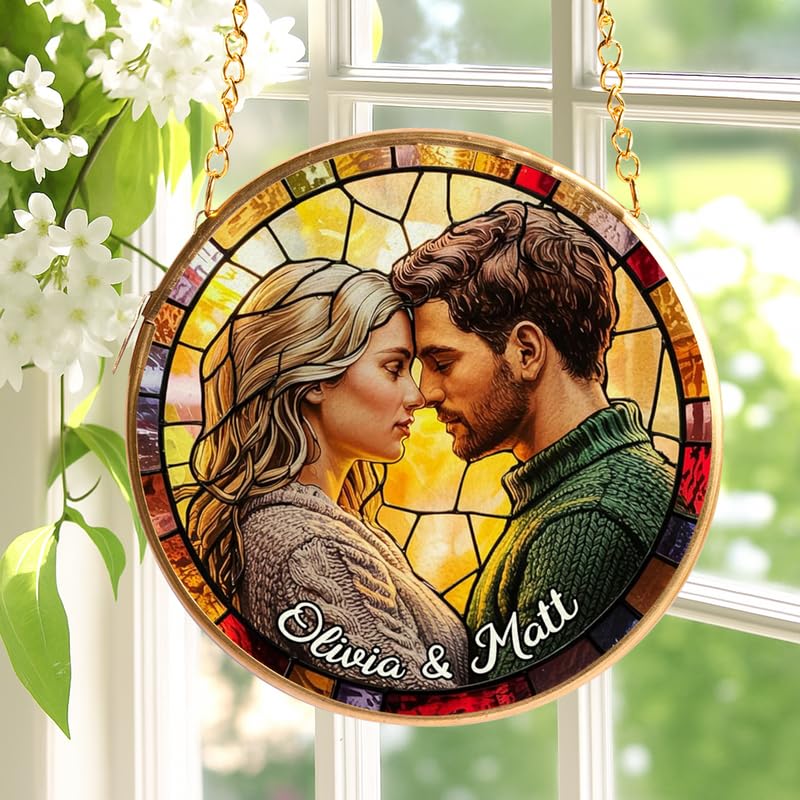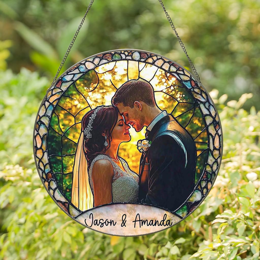 - This stunning suncatcher features a radiant array of colors that capture and reflect sunlight beautifully, casting a warm, vibrant glow across the room. Customize it with a cherished photo of the couple (or even a beloved pet) to create a deeply personal keepsake that celebrates your unique bond.