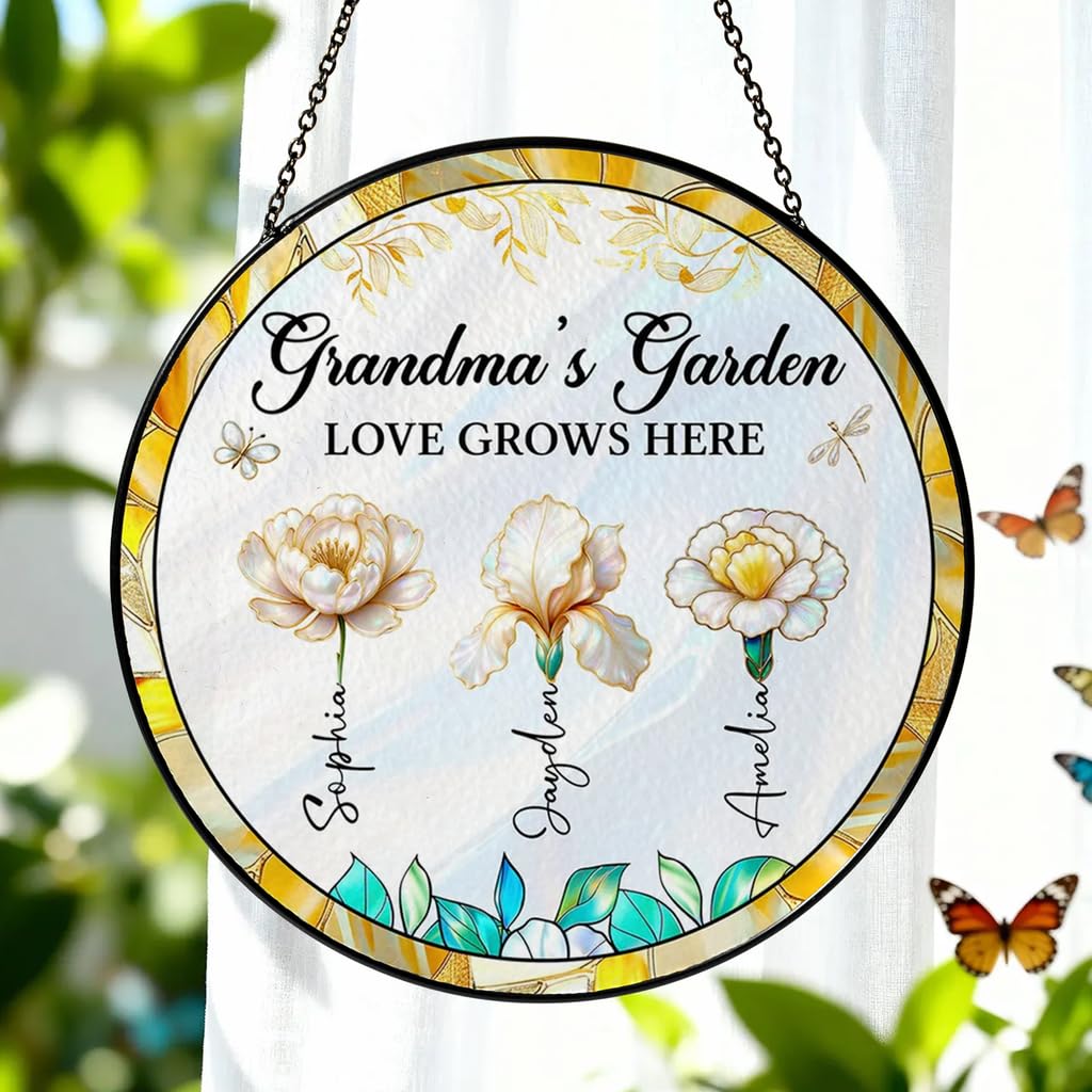 Custom Grandma Portrait Stained Glass Suncatcher, Personalized Photo Glass Art, New Grandma Gift, for Mama, New Mom Gift, Customized Mom Suncatcher Ornament