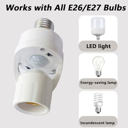 - Universal Screw-in Design, Plug-and-Play:Adopting standard E26/E27 screw bases, it is compatible with most household bulbs on the market, such as LED bulbs and incandescent bulbs, without the need for additional circuit modification. Simply screw the sensor socket into the original lamp holder and then install the bulb to use it. No professional electrician is required for installation, and even the elderly can operate it easily