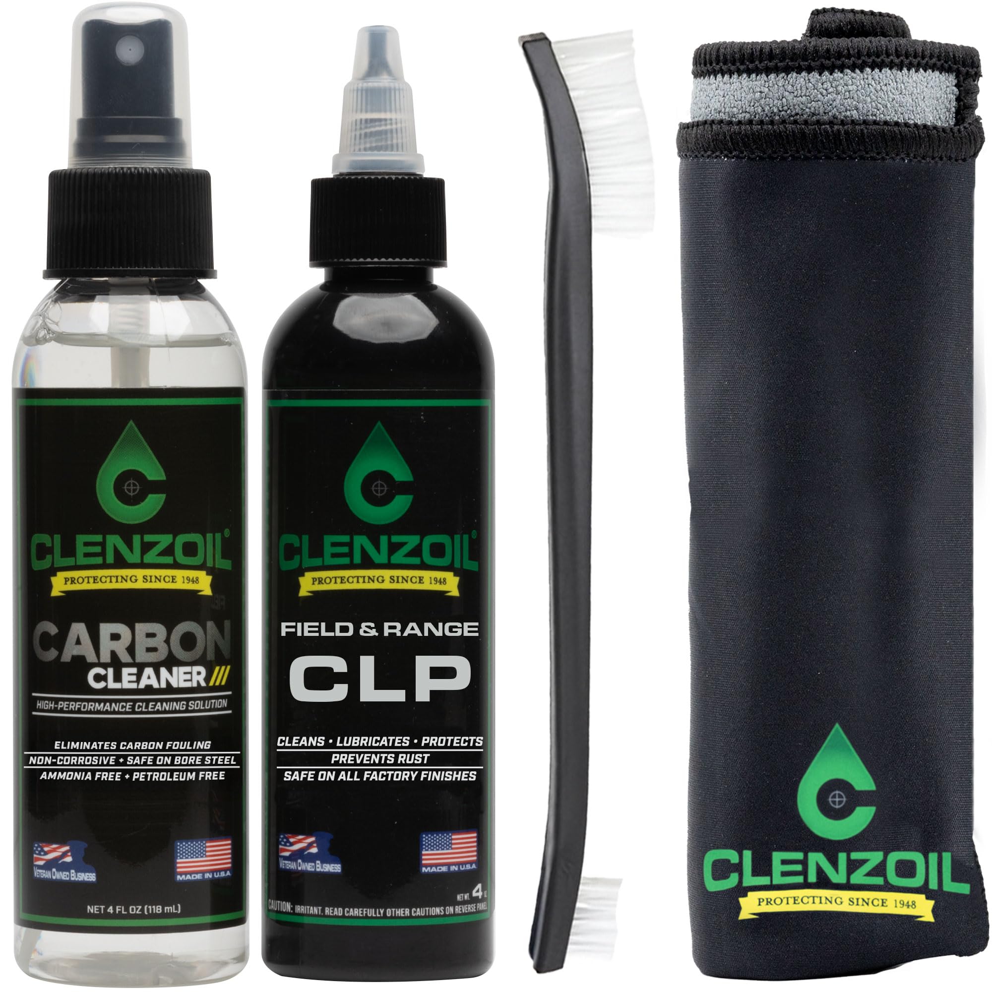 Achieve unmatched firearm maintenance with the Two-Step Firearm Cleaning & Maintenance System. This pro-level kit is designed to tackle carbon buildup while delivering lasting protection against wear, rust, and corrosion. Step one uses the Carbon Cleaner to penetrate and dissolve stubborn fouling for a deep, thorough clean. Step two applies the precision CLP formula, providing long-lasting lubrication and rust prevention to keep your firearms operating smoothly and reliably. Safe for all firearm finishes — including blued steel, stainless steel, polymer, wood, Cerakote, and leather — this system is trusted by shooters, hunters, military, and law enforcement professionals. Compact and portable, it’s ideal for keeping in your range bag or hunting pack for quick field maintenance or detailed at-home cleaning. Proudly made in the USA by a veteran and law enforcement–owned company, trusted since 1948 for delivering proven performance in firearm care.