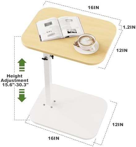 - 【Lightweight & Adjustable Height】- This C-shaped end table with an adjustable height and 360° swivel top offers convenient access from the couch or bed. The height of the compact side table can be adjusted by loosening the screws. Table top measures 15.7 x 11.8 inches, with an adjustable height range of 18 to 31 inches.