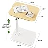C Shaped End Table for Couch, Adjustable Height Couch Side Table, Horizontal 360°Swivel Small TV Tray Table Couch Side Tables That Slide Under (Wood)