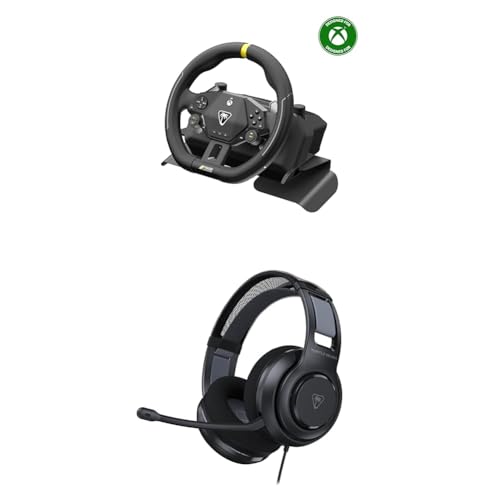 Bundle of Turtle Beach Racer Wireless Racing Wheel System Officially Licensed for Xbox Series X|S, Xbox One, PC - Black + Turtle Beach Atlas 200 Wired Multiplatform Gaming Headset for Xbox, PC - Black