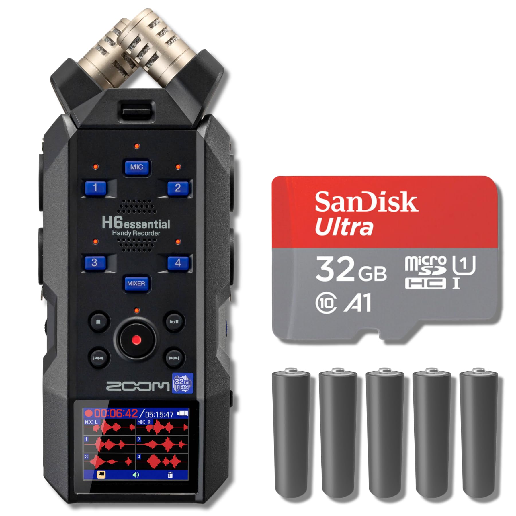 Zoom H1essential 2-Track 32-Bit Float Portable Audio Recorder with Zoom APH-1e Accessory Pack, 32GB microSD Card and 5X AAA Batteries