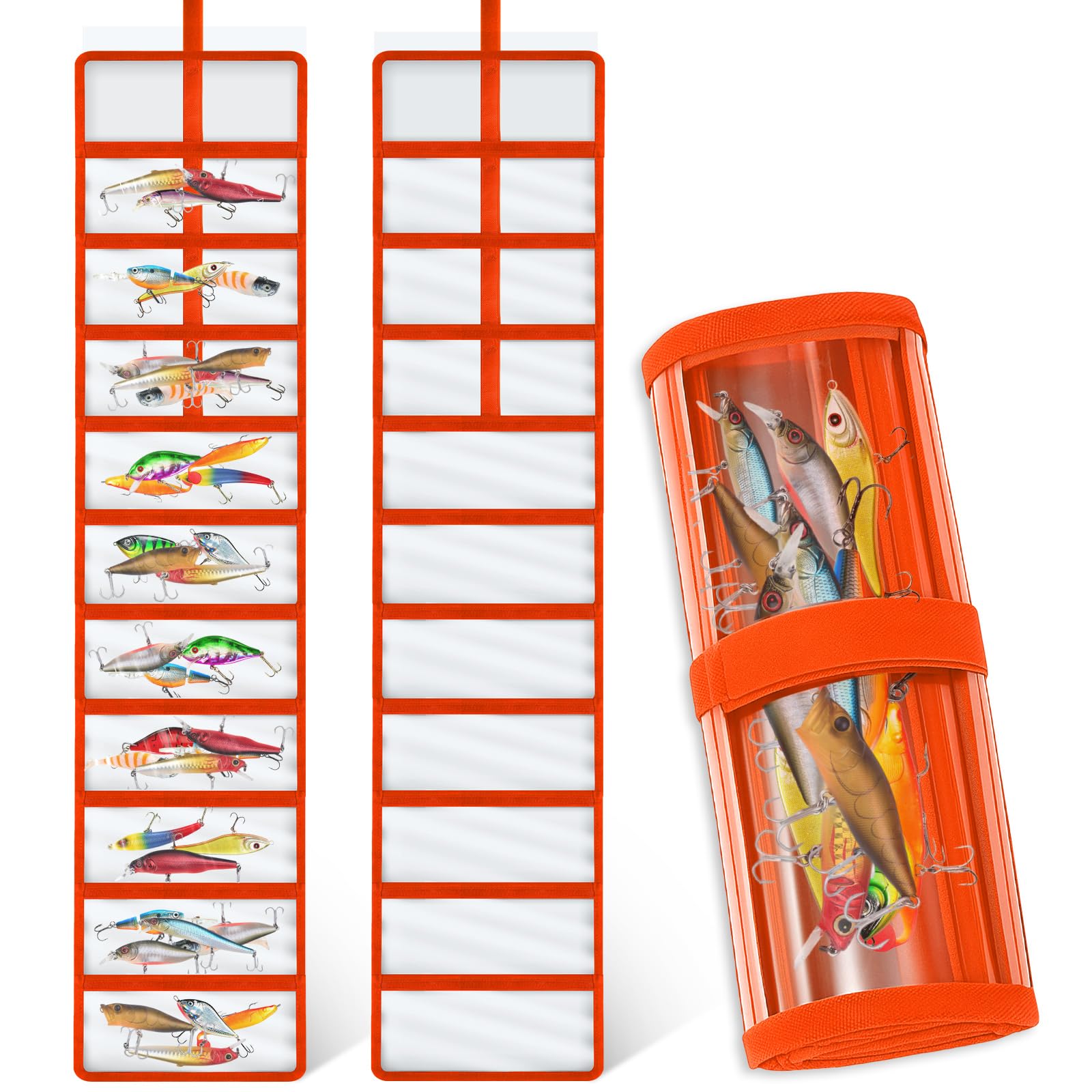 Soulchen 2 Pcs Roll up Fishing Lure Cover Wraps Set 10 Pocket Lure Bait Bag Clear PVC Fishing Tackle Storage Bags & Wraps Easily See Lures Storage Organizer Protector(Orange)