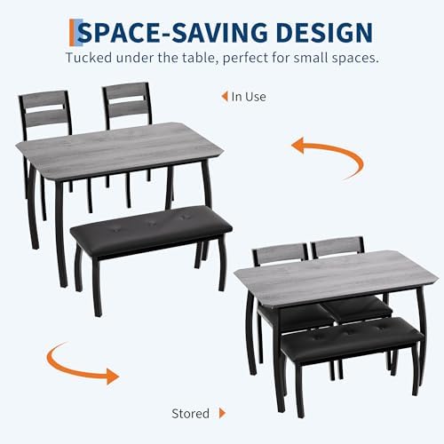 - 🏡 Smart Space-Saving Solution:Engineered for compact living, the bench and chairs slide completely under the table when not in use. Perfect as a kitchen dinette set, apartment breakfast nook, or space-efficient dining solution - maximizes your floorplan without sacrificing style.